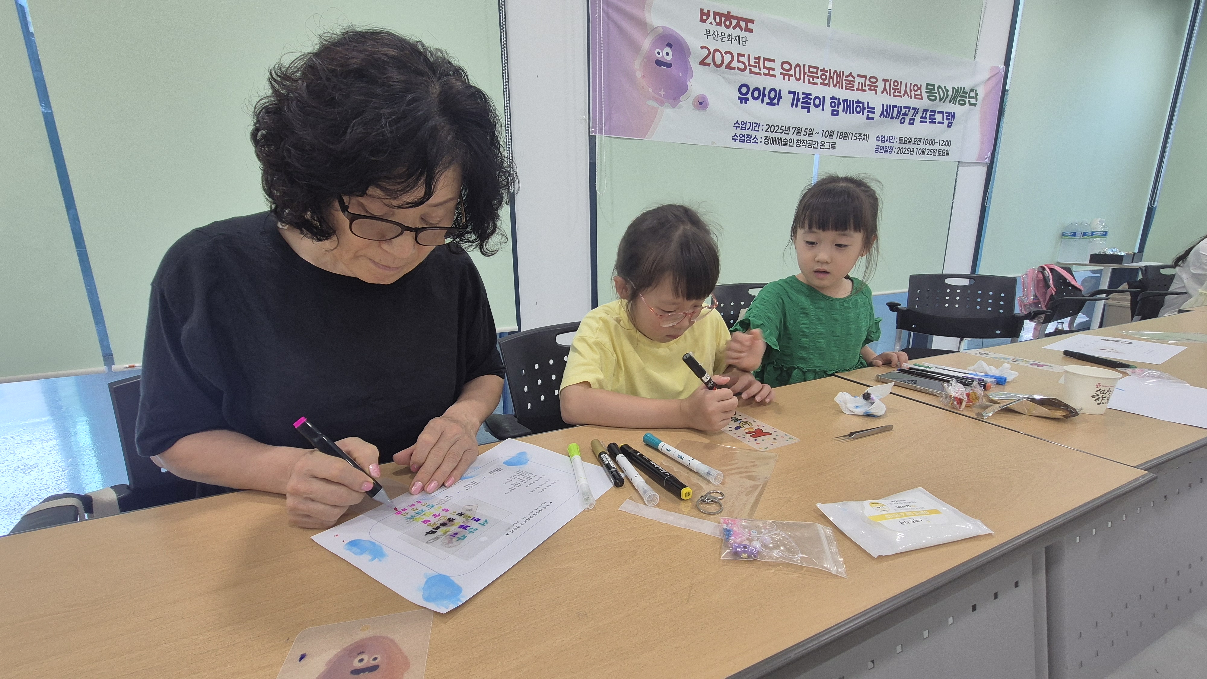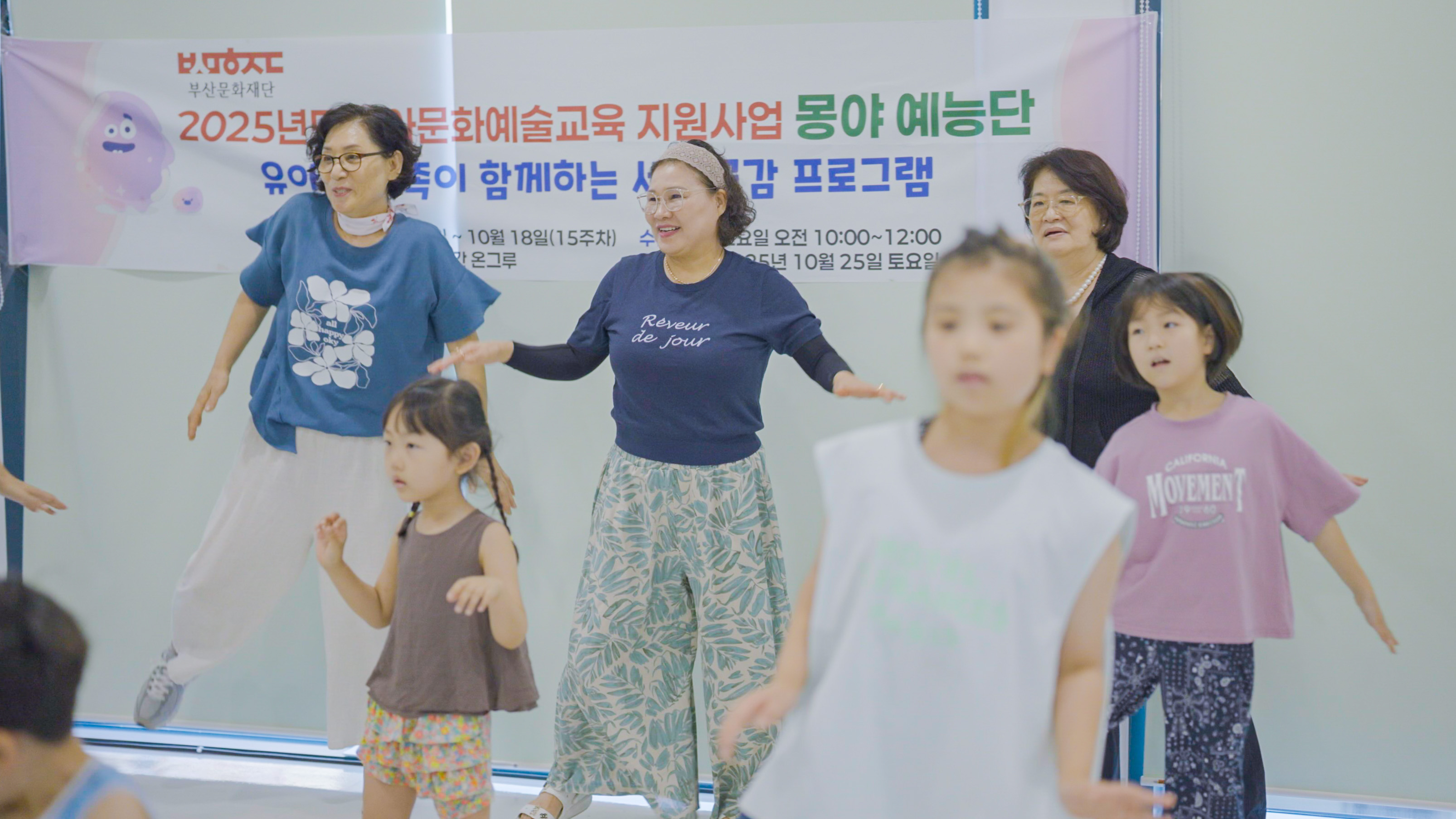 6~7세 유아와 보호자(조부모, 부모, 양육자 등) 함께 참여할 수 있는 미술+신체 움직임 활동을 통한 세대공감 프로그램입니다.