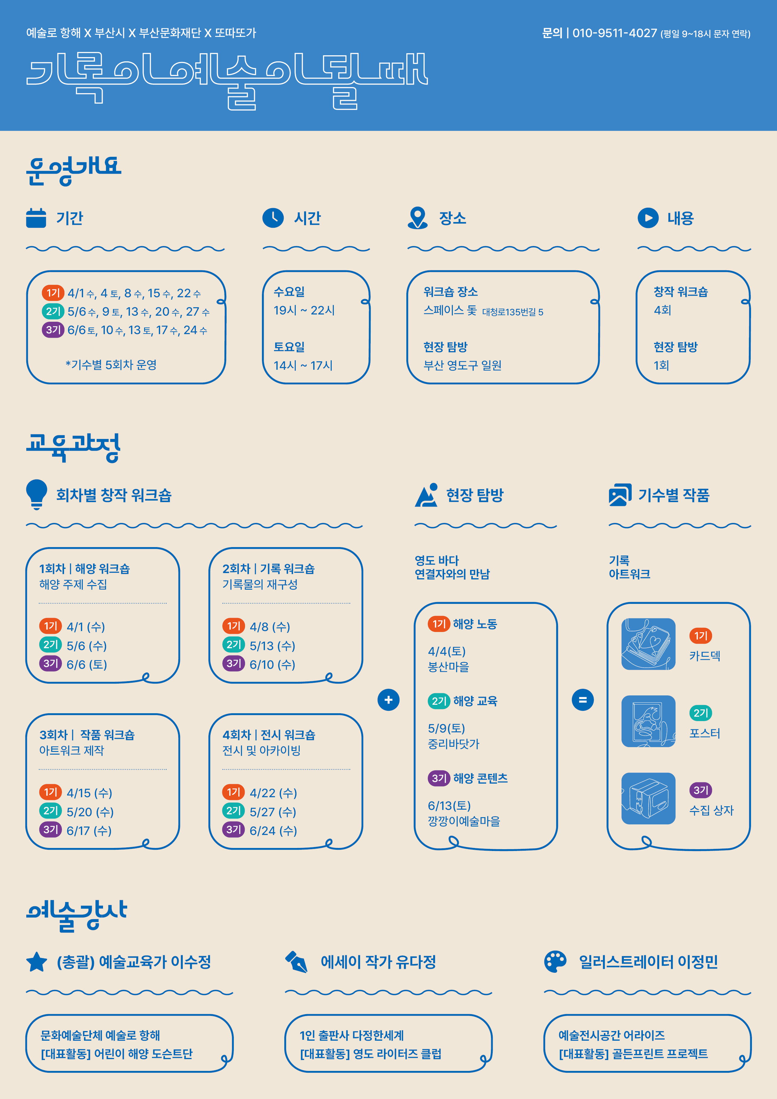 교육예술팀 예술로 항해에서 진행하는 본 프로그램은 2026년 부산광역시, 부산문화재단 <15분도시 특화 부산문화예술교육지원사업>으로 지원을 받았습니다.