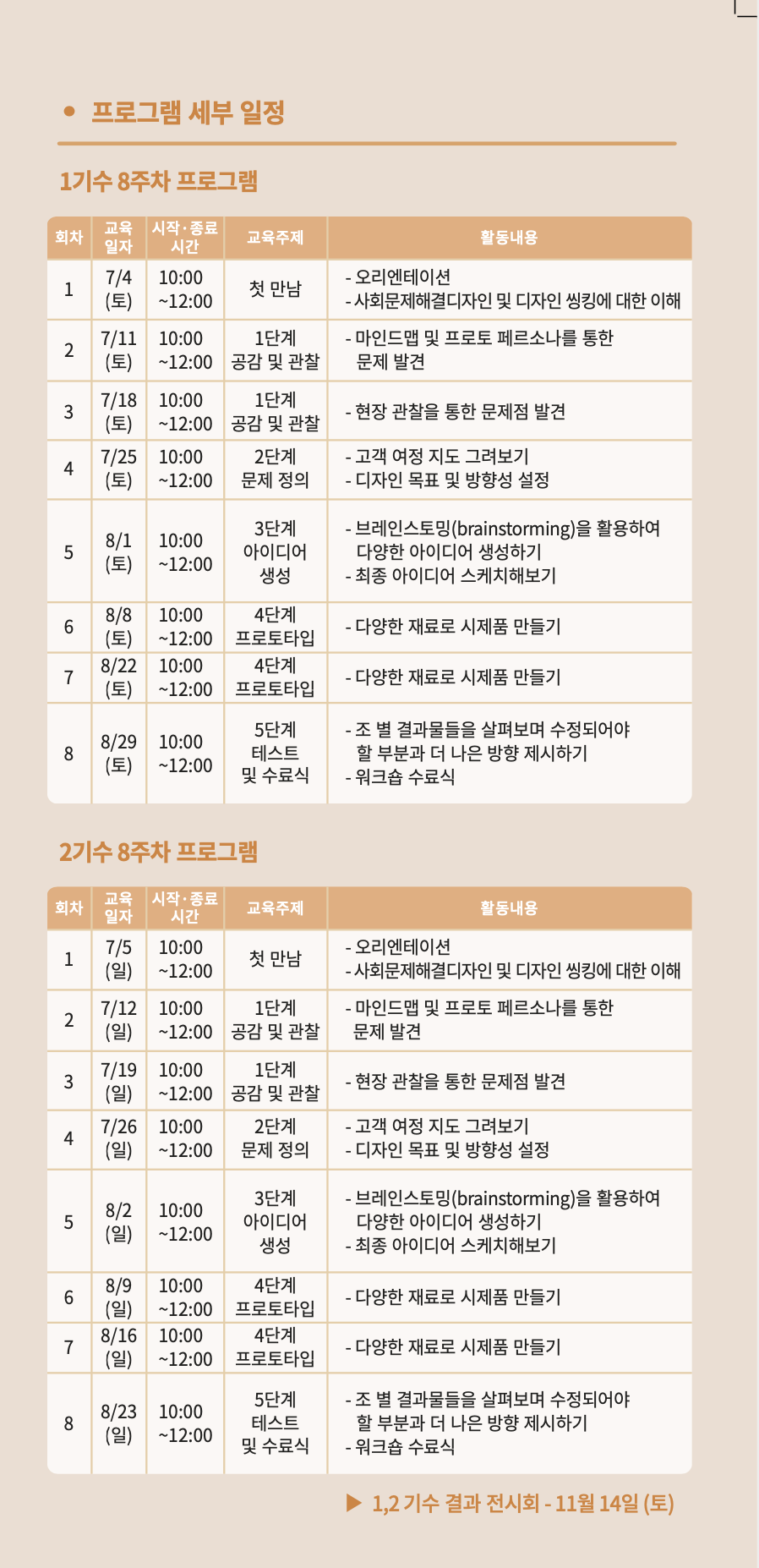 - 2기 프로그램 (매주 일 오전 10시~12시) : 10명 정원