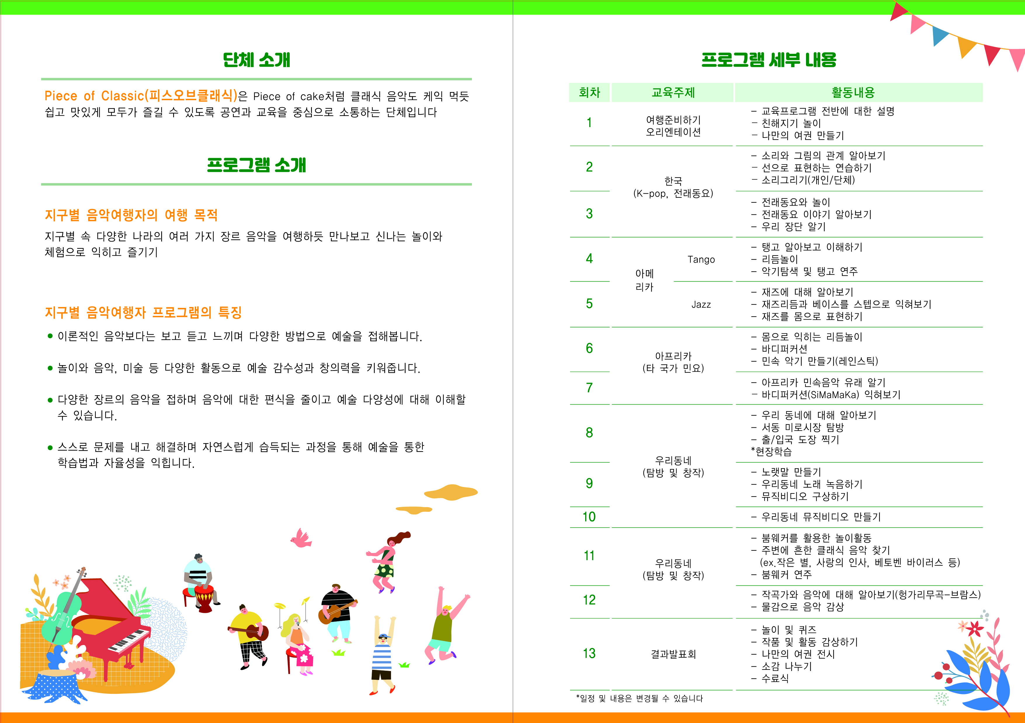 | 교육분야 | 음악 | 교육대상 | 아동 |