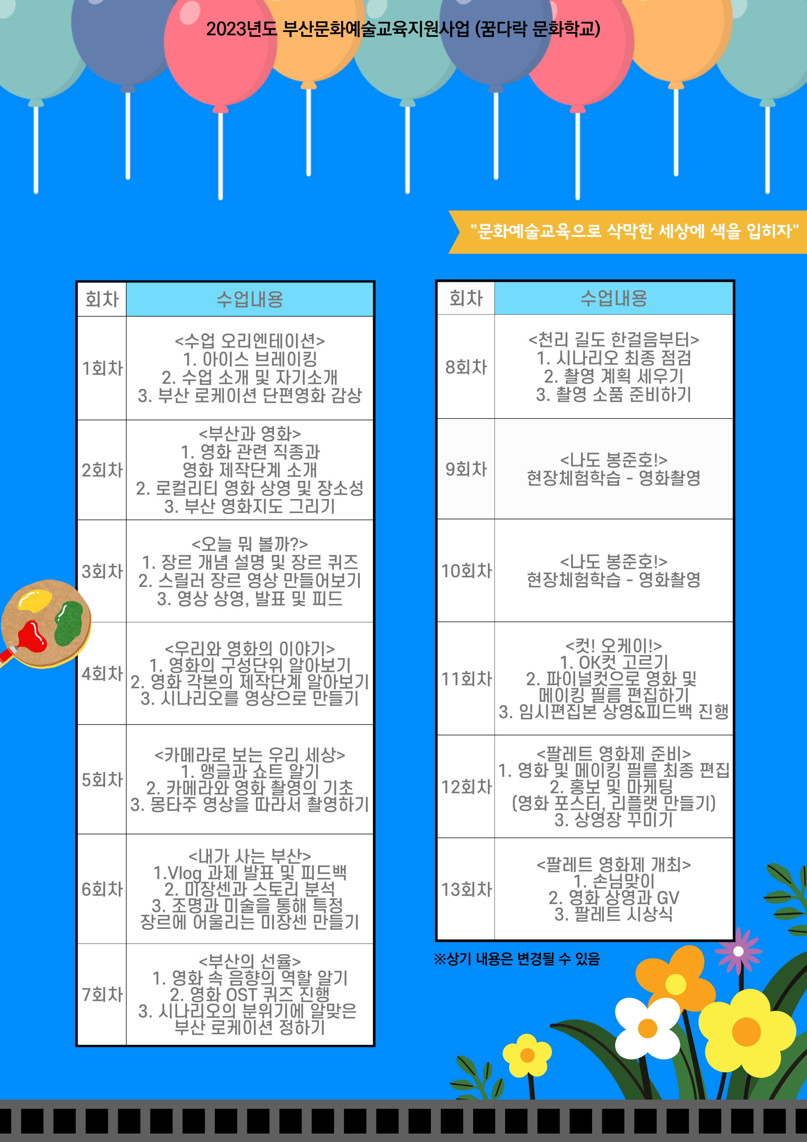 - 부산의 색을 담은 나만의 영화를 제작해보는 시간을 갖습니다.