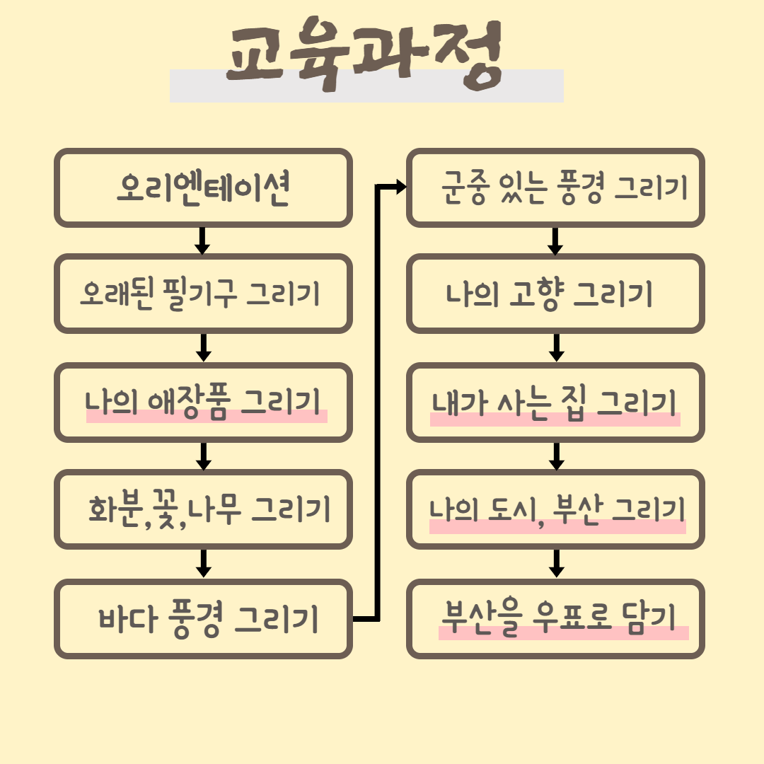 • 배운 기법을 토대로 애장품, 나의집, 나의도시 부산을 그립니다.