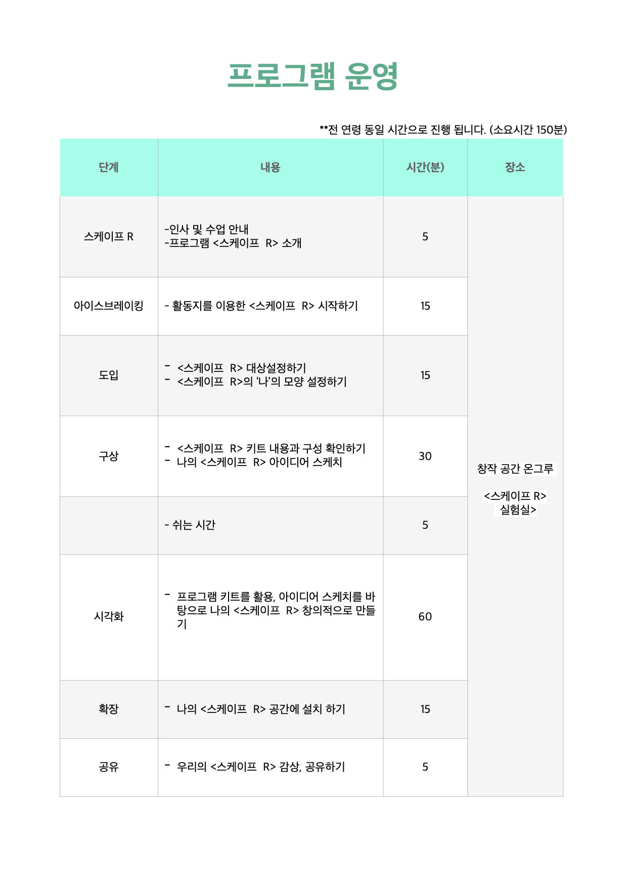 - 전 연령 동일 시간으로 진행 됩니다. (소요시간 150분)