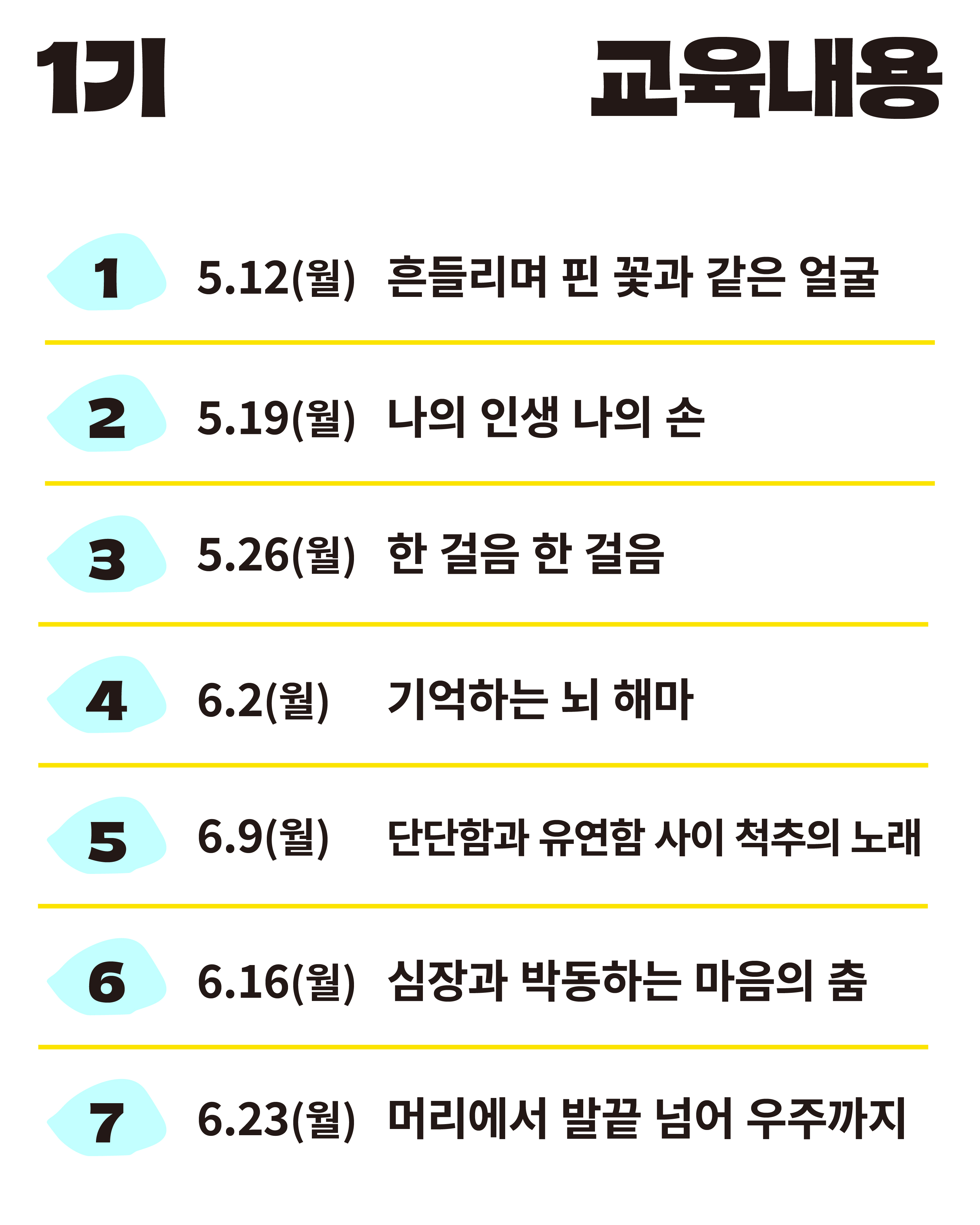 교육일자 2025-05-12(월) ~ 2025-10-20(월) (1회당 교육시간 : 3시간
