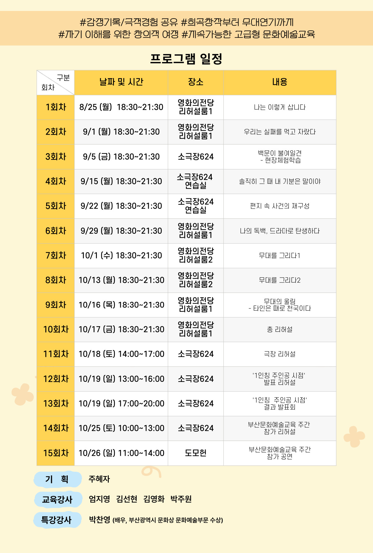 | 교육분야 | 연극 | 교육대상 | 지역민 |
